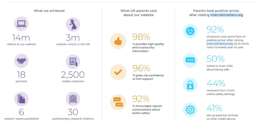 From campaigns and partnerships to supporting professionals and vulnerable young people, we’re proud to have served the online safety and digital wellbeing needs of families across the UK and beyond.