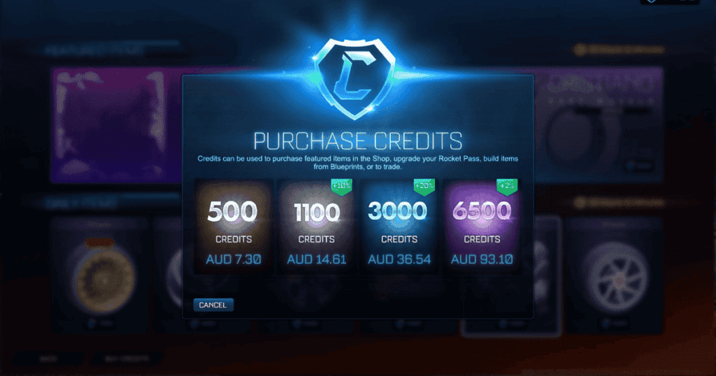 Rocket League’s credits are a premium currency that roughly equals £0.59-£1 per 100. The game prices items based on how rare they are. As such, you could spend between 50 – 100 credits on rare items or up to 800 credits on ‘exotic’ items such as painted wheels for cars.