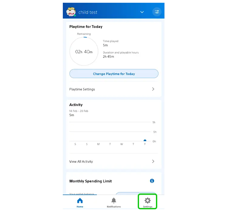 Étape 1 – Dans l’application PlayStation Family, sélectionnez Paramètres > Gestion de la famille > votre enfant.