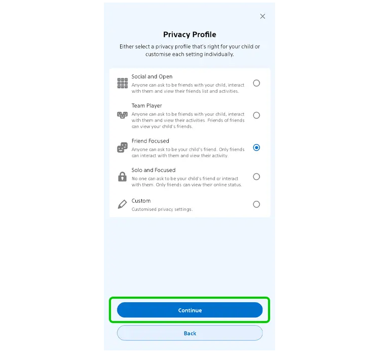 Étape 17 – Vous pouvez maintenant sélectionner le type de profil qui convient le mieux à l'âge, à la maturité, aux compétences et aux besoins de votre enfant, aspects que nous avons omis précédemment.