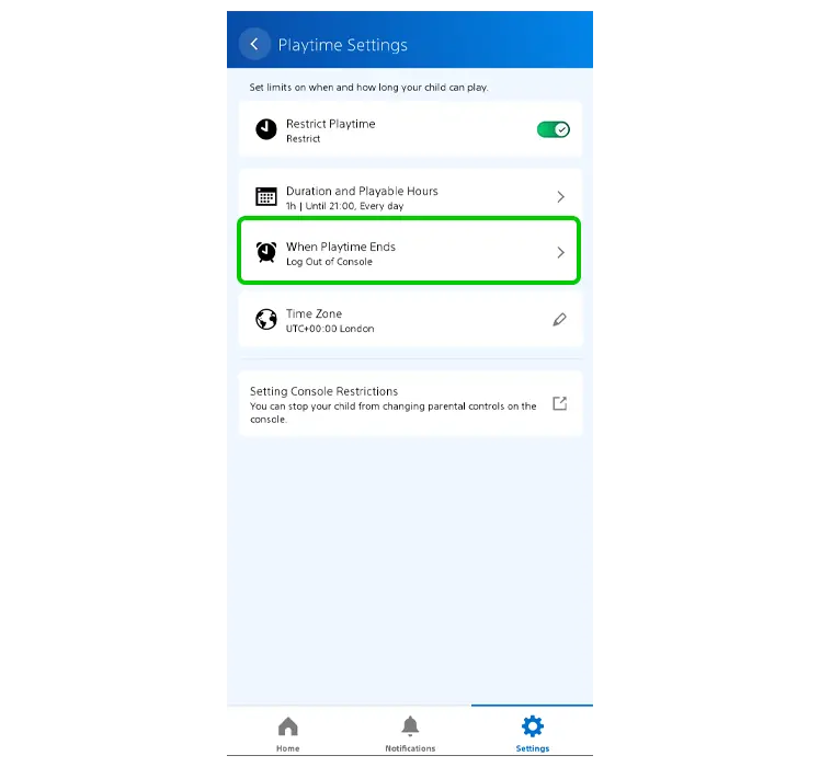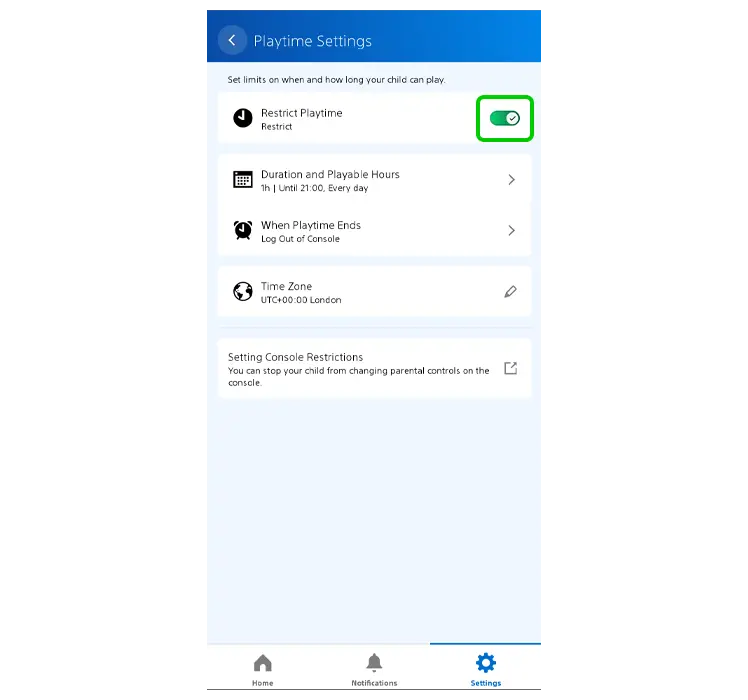 L'application PlayStation Family vous permet de définir des limites quant au temps que votre enfant peut passer à jouer chaque jour et à certaines heures.