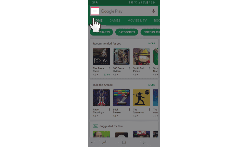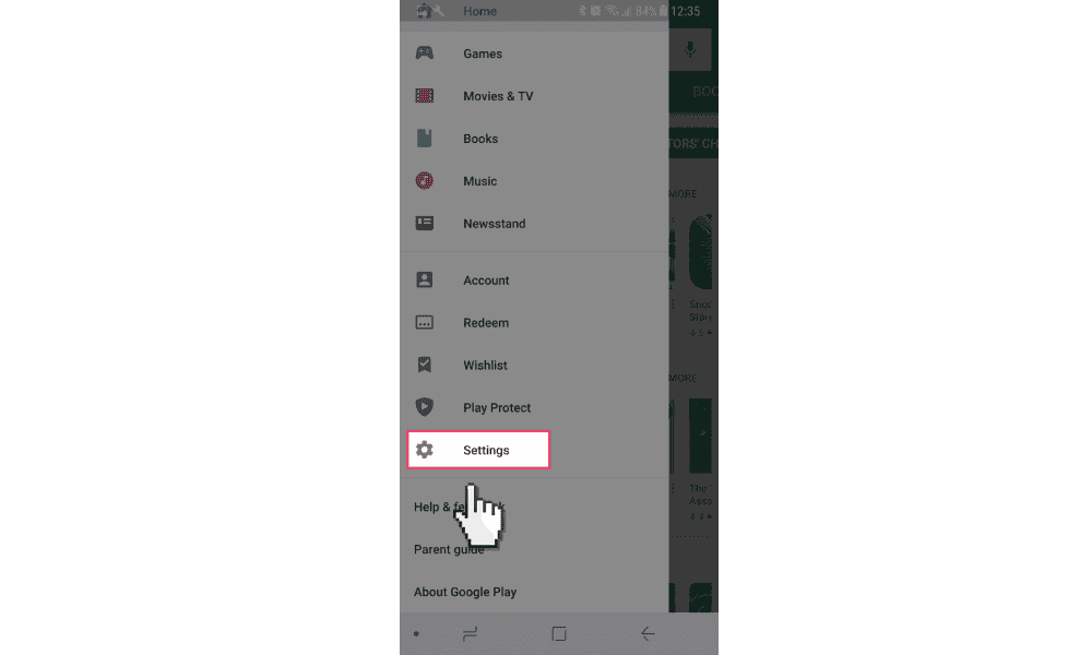 Now we will enable your handset to require the Google account password when making purchases. Return to the “Settings” menu within the “Play Store” app (Steps 2-4).