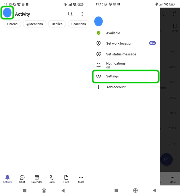 Step 1 – Open the menu by selecting your profile icon in the top-left corner.